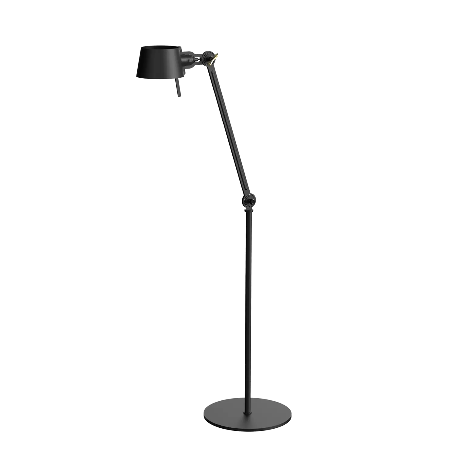 Tonone Bolt Floor 1-armen er et design af Anton de Groof. Den robuste industrielle lampeserie BOLT er genkendelig ved funktionalitet i form, rene linjer og vingemøtrikkens ikoniske hovedrolle. Bolt-serien fås i 29 modeller. Gulvlampen er kendetegnet ved den justerbare pulverlakerede stålarm og en åben skærm lavet af pulverlakeret aluminium. Den åbne skærm sikrer en flot lysfordeling. Lampen kan drejes og har en tung base. Den massive messingvingemøtrik er inkluderet for at justere hængslerne efter ønske. Udover at være et funktionelt hjælpemiddel er vingemøtrikken integreret i lampens design og er et karakteristisk visuelt element. Tonone Bolt-serien fås i 11 farver: Smokey Black, Flux Green, Pure White, Ash Grey, Midnight Grey, Lightning White, Striking Orange, Thunder Blue, Daybreak Rose, Sunny Yellow og Ice Blue.