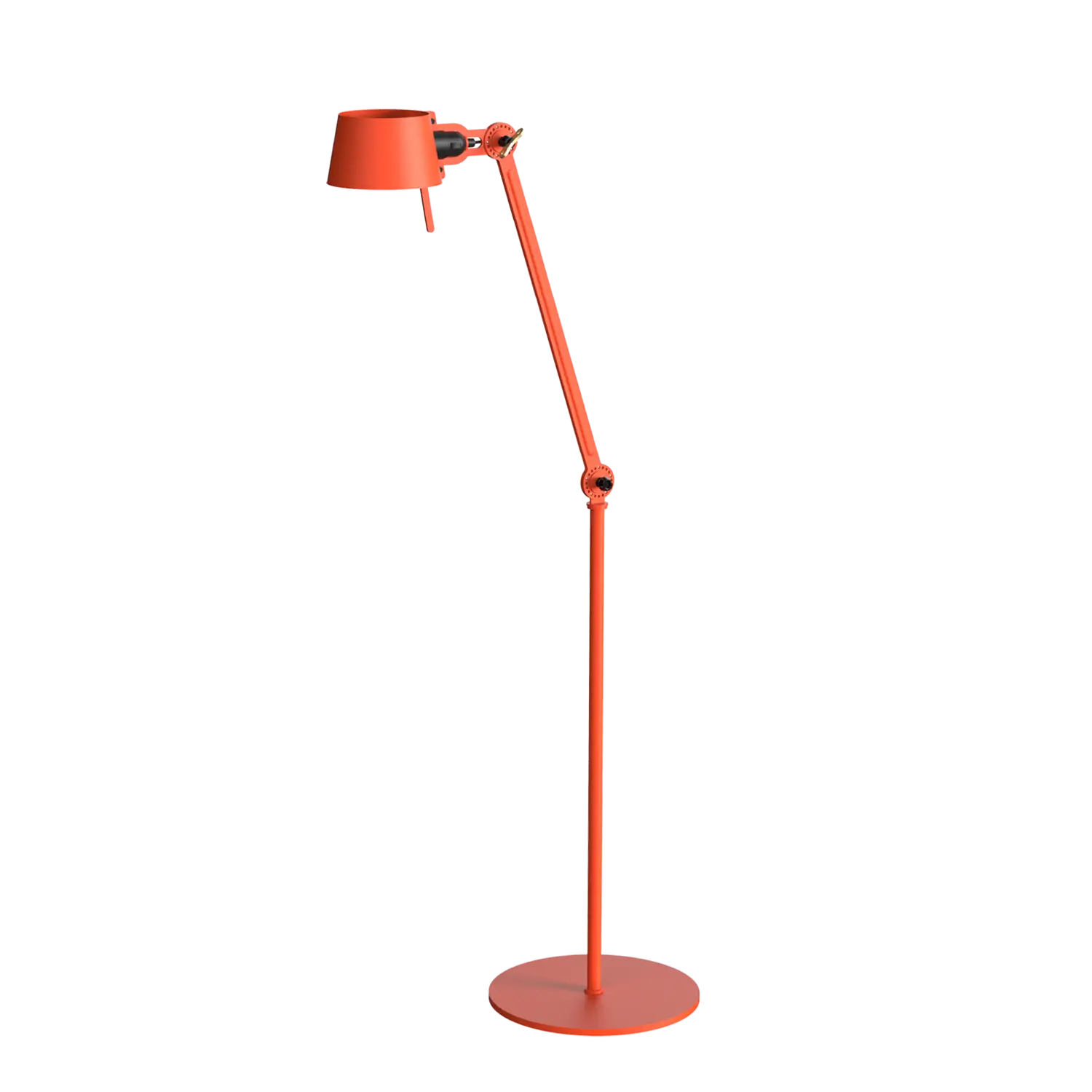 Tonone Bolt Floor 1-armen er et design af Anton de Groof. Den robuste industrielle lampeserie BOLT er genkendelig ved funktionalitet i form, rene linjer og vingemøtrikkens ikoniske hovedrolle. Bolt-serien fås i 29 modeller. Gulvlampen er kendetegnet ved den justerbare pulverlakerede stålarm og en åben skærm lavet af pulverlakeret aluminium. Den åbne skærm sikrer en flot lysfordeling. Lampen kan drejes og har en tung base. Den massive messingvingemøtrik er inkluderet for at justere hængslerne efter ønske. Udover at være et funktionelt hjælpemiddel er vingemøtrikken integreret i lampens design og er et karakteristisk visuelt element. Tonone Bolt-serien fås i 11 farver: Smokey Black, Flux Green, Pure White, Ash Grey, Midnight Grey, Lightning White, Striking Orange, Thunder Blue, Daybreak Rose, Sunny Yellow og Ice Blue.