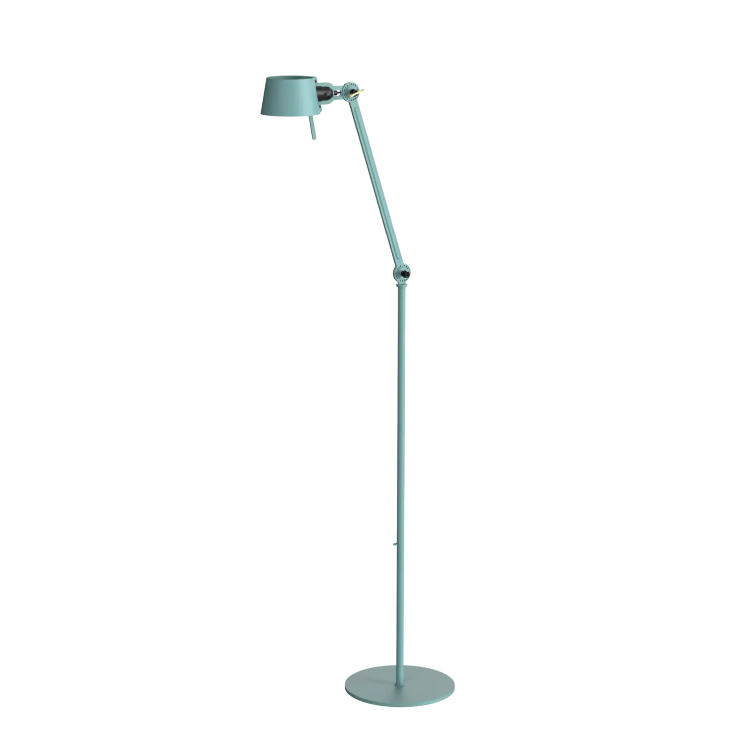 Tonone Bolt gulvlampe med lang arm er et design af Anton de Groof. Den robuste industrielle lampeserie BOLT er genkendelig ved funktionalitet i form, rene linjer og vingemøtrikkens ikoniske hovedrolle. Bolt-serien fås i 29 modeller. Gulvlampen er kendetegnet ved den justerbare pulverlakerede stålarm og en åben skærm lavet af pulverlakeret aluminium. Den åbne skærm sikrer en flot lysfordeling. Lampen kan drejes og har en tung base. Den massive vingemøtrik i messing medfølger til at justere hængslerne efter ønske. Udover at være et funktionelt hjælpemiddel er vingemøtrikken integreret i lampens design og er et karakteristisk visuelt element. Tonone Bolt-serien fås i 11 farver: Smokey Black, Flux Green, Pure White, Ash Grey, Midnight Grey, Lightning White, Striking Orange, Thunder Blue, Daybreak Rose, Sunny Yellow og Ice Blue.