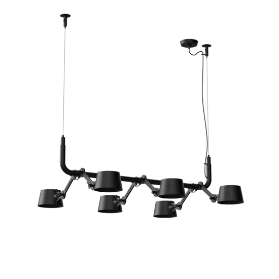 Tonone Bolt 6-Pack Pendel er et design af Anton de Groof. Den robuste industrielle lampeserie BOLT er genkendelig ved funktionalitet i form, rene linjer og vingemøtrikkens ikoniske hovedrolle. Bolt-serien fås i 29 modeller. 6-Pack Pendelen er kendetegnet ved en ramme med 6 justerbare pulverlakerede stålarme og pulverlakerede aluminiumsskærme. De åbne skærme sikrer en flot lysfordeling. Loftslampen kan justeres i forskellige positioner med vingemøtrikken. Den massive messingvingemøtrik er inkluderet for at justere hængslerne efter ønske. Udover at være et funktionelt hjælpemiddel er vingemøtrikken integreret i lampens design og er et karakteristisk visuelt element. Tonone Bolt-serien fås i 11 farver: Smokey Black, Flux Green, Pure White, Ash Grey, Midnight Grey, Lightning White, Striking Orange, Thunder Blue, Daybreak Rose, Sunny Yellow og Ice Blue. Bolt Pack-Pendlen fås også i en 8-, 10- eller 12-pak.