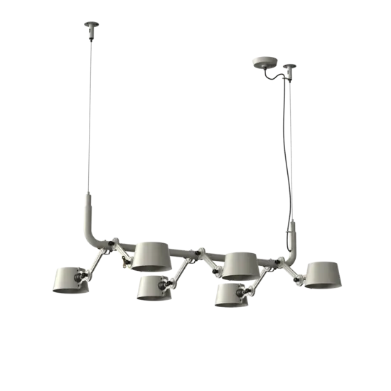 Tonone Bolt 6-Pack Pendel er et design af Anton de Groof. Den robuste industrielle lampeserie BOLT er genkendelig ved funktionalitet i form, rene linjer og vingemøtrikkens ikoniske hovedrolle. Bolt-serien fås i 29 modeller. 6-Pack Pendelen er kendetegnet ved en ramme med 6 justerbare pulverlakerede stålarme og pulverlakerede aluminiumsskærme. De åbne skærme sikrer en flot lysfordeling. Loftslampen kan justeres i forskellige positioner med vingemøtrikken. Den massive messingvingemøtrik er inkluderet for at justere hængslerne efter ønske. Udover at være et funktionelt hjælpemiddel er vingemøtrikken integreret i lampens design og er et karakteristisk visuelt element ved lampen. Tonone Bolt-serien fås i 11 farver: Smokey Black, Flux Green, Pure White, Ash Grey, Midnight Grey, Lightning White, Striking Orange, Thunder Blue, Daybreak Rose, Sunny Yellow og Ice Blue. Bolt Pack-Pendlen fås også i en 8-, 10- eller 12-pak.