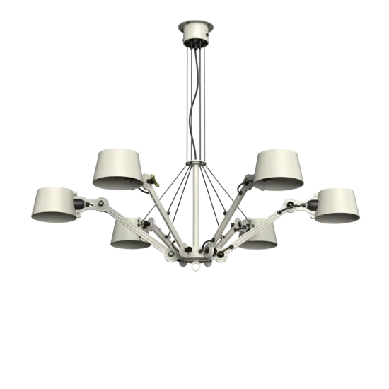 Denne lysekrone fra Tonone har seks justerbare arme i pulverlakeret stål, der giver dig fleksibilitet til at rette lyset præcis, hvor du har brug for det. De åbne skærme sikrer en god lysfordeling i rummet, hvilket skaber en behagelig atmosfære uden hårde skygger.