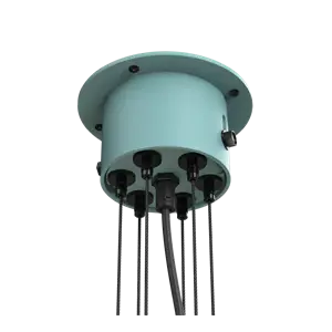 Skærmene er lavet af pulverlakeret aluminium, hvilket gør dem lette at vedligeholde og ideelle til moderne indretning. Lysekronen fås i farven isblå og er en del af Tonone BOLT-serien, som fås i 11 forskellige farver. Det giver dig mulighed for at finde en farve, der passer til din indretning.