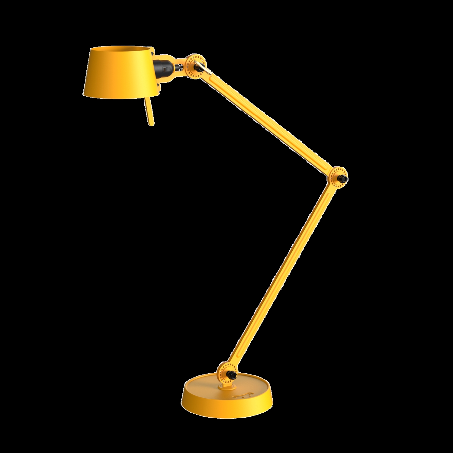 Tonone Bolt Desk 2-arms fod er et design af Anton de Groof. Den robuste industrielle lampeserie BOLT er genkendelig ved funktionalitet i form, rene linjer og vingemøtrikkens ikoniske hovedrolle. Bolt-serien fås i 29 modeller. Skrivebordslampen er kendetegnet ved de to justerbare pulverlakerede stålarme og en åben skærm lavet af pulverlakeret aluminium. Den åbne skærm sikrer en flot lysfordeling. Den massive vingemøtrik i messing er inkluderet for at justere hængslerne efter ønske. Udover at være et funktionelt hjælpemiddel er vingemøtrikken integreret i lampens design og er et karakteristisk visuelt element. Lampen kan drejes og har en tung fod. Skrivebordslampen fås også med klemme. Tonone Bolt-serien i 11 farver: Smokey Black, Flux Green, Pure White, Ash Grey, Midnight Grey, Lightning White, Striking Orange, Thunder Blue, Daybreak Rose, Sunny Yellow og Ice Blue.