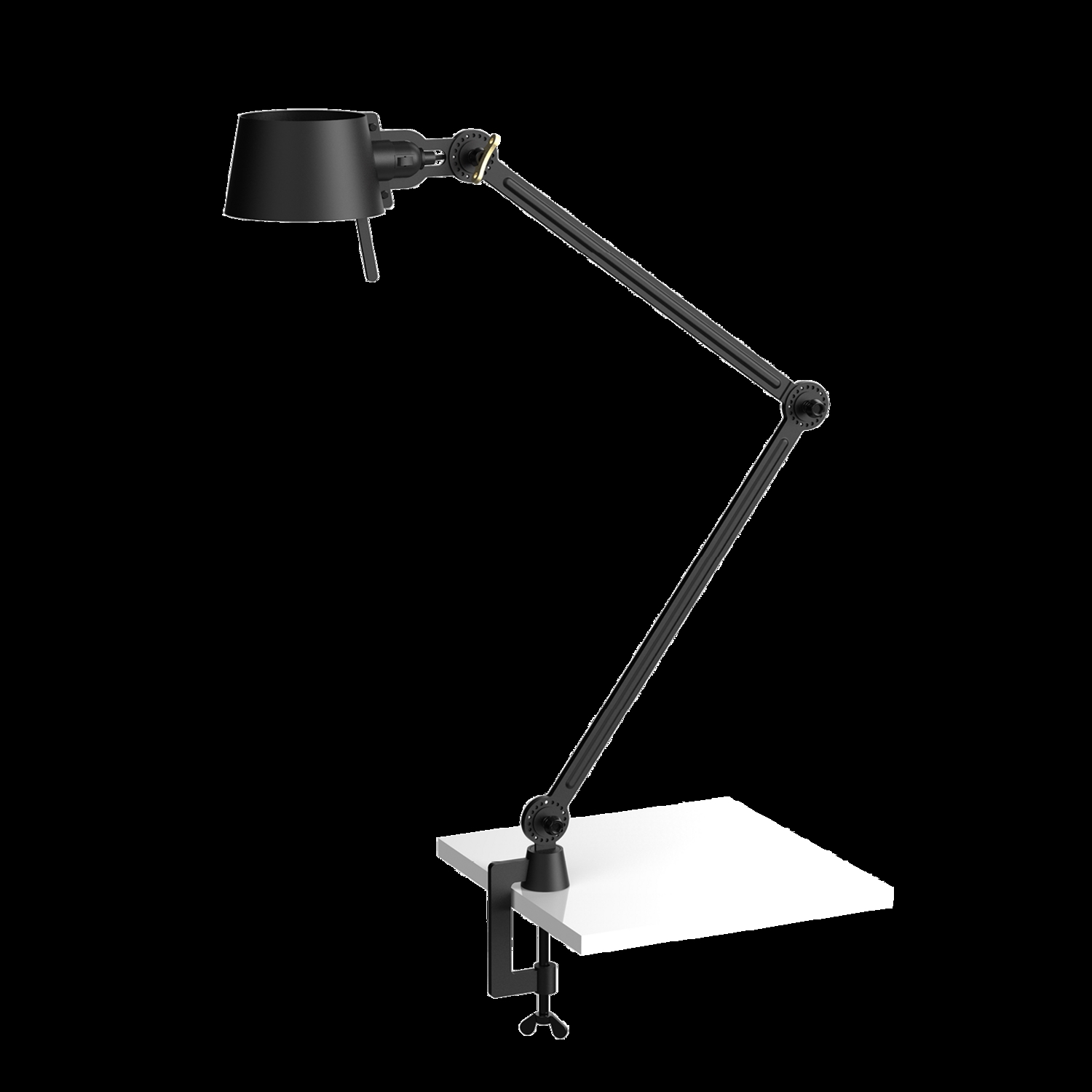 Tonone Bolt Desk 2-arms klemme er et design af Anton de Groof. Den robuste industrielle lampeserie BOLT er genkendelig ved funktionalitet i form, rene linjer og vingemøtrikkens ikoniske hovedrolle. Bolt-serien fås i 29 modeller. Skrivebordslampen er kendetegnet ved de to justerbare pulverlakerede stålarme og en åben skærm lavet af pulverlakeret aluminium. Den åbne skærm sikrer en flot lysfordeling. Den massive messing-vingemøtrik er inkluderet for at justere hængslerne efter ønske. Udover at være et funktionelt hjælpemiddel er vingemøtrikken integreret i lampens design og er et karakteristisk visuelt element. Lampen kan drejes og har en klemme til at fastgøre lampen til et skrivebord eller bord. Skrivebordslampen fås også med en fod. Tonone Bolt-serien i 11 farver: Smokey Black, Flux Green, Pure White, Ash Grey, Midnight Grey, Lightning White, Striking Orange, Thunder Blue, Daybreak Rose, Sunny Yellow og Ice Blue.