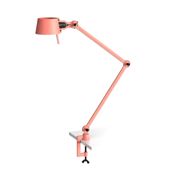 Tonone Bolt Desk 2-arms klemme er et design af Anton de Groof. Den robuste industrielle lampeserie BOLT er genkendelig ved funktionalitet i form, rene linjer og vingemøtrikkens ikoniske hovedrolle. Bolt-serien fås i 29 modeller. Skrivebordslampen er kendetegnet ved de to justerbare pulverlakerede stålarme og en åben skærm lavet af pulverlakeret aluminium. Den åbne skærm sikrer en flot lysfordeling. Den massive messing-vingemøtrik er inkluderet til at justere hængslerne efter ønske. Udover at være et funktionelt hjælpemiddel er vingemøtrikken integreret i lampens design og er et karakteristisk visuelt element. Lampen kan drejes og har en klemme til at fastgøre lampen til et skrivebord eller bord. Skrivebordslampen fås også med en fod. Tonone Bolt-serien i 11 farver: Smokey Black, Flux Green, Pure White, Ash Grey, Midnight Grey, Lightning White, Striking Orange, Thunder Blue, Daybreak Rose, Sunny Yellow og Ice Blue.