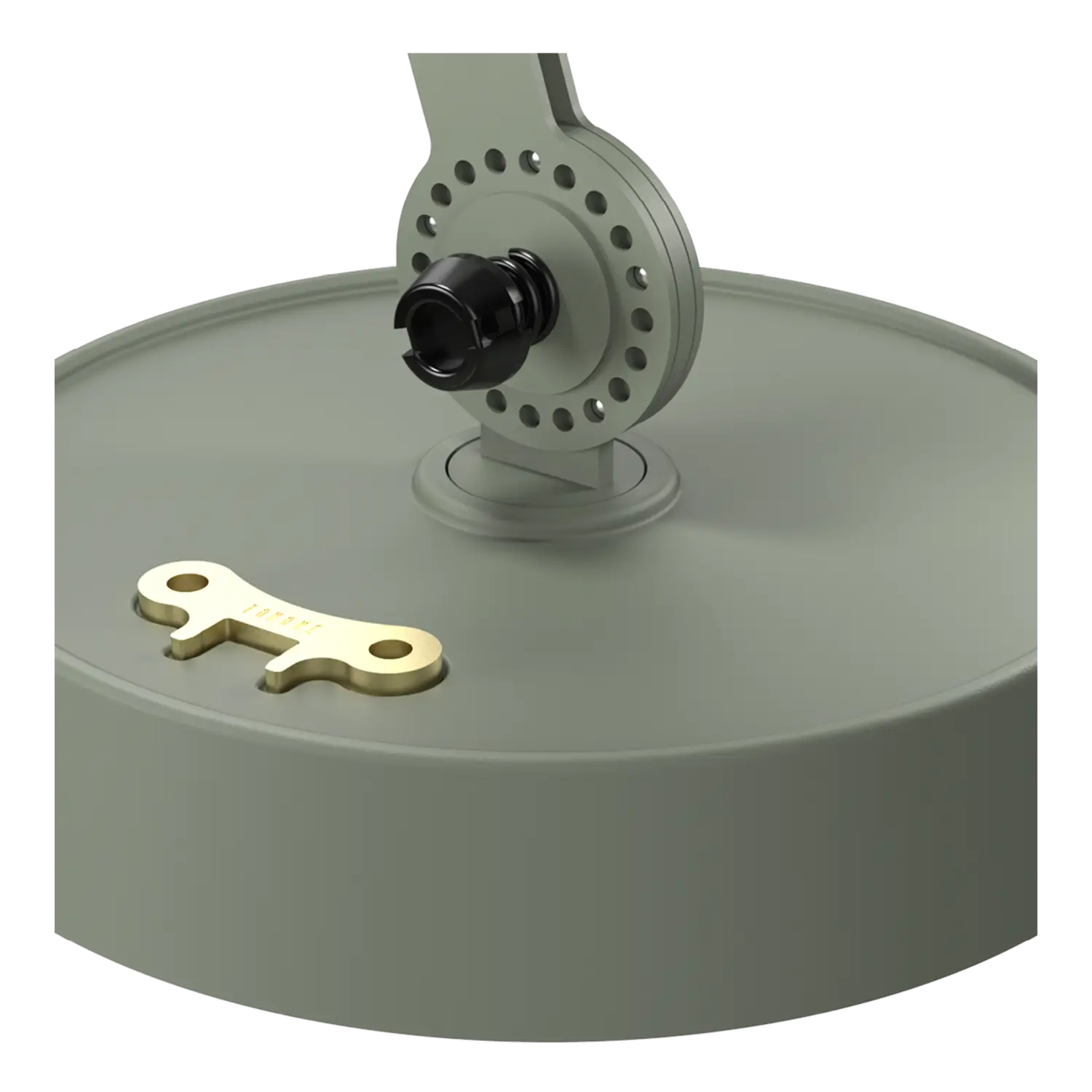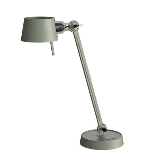 Tonone Bolt Desk 1 arm foot er et design af Anton de Groof. Den robuste industrielle lampeserie BOLT er genkendelig ved funktionalitet i form, rene linjer og vingemøtrikkens ikoniske hovedrolle. Bolt-serien fås i 29 modeller. Skrivebordslampen er kendetegnet ved en justerbar pulverlakeret stålarm og en åben skærm lavet af pulverlakeret aluminium. Den åbne skærm sikrer en flot lysfordeling. Den massive messingvingemøtrik er inkluderet for at justere hængslerne efter ønske. Udover at være et funktionelt hjælpemiddel er vingemøtrikken integreret i lampens design og er et karakteristisk visuelt element. Lampen kan drejes og har en tung fod. Skrivebordslampen fås også med klemme. Tonone Bolt-serien i 11 farver: Smokey Black, Flux Green, Pure White, Ash Grey, Midnight Grey, Lightning White, Striking Orange, Thunder Blue, Daybreak Rose, Sunny Yellow og Ice Blue.