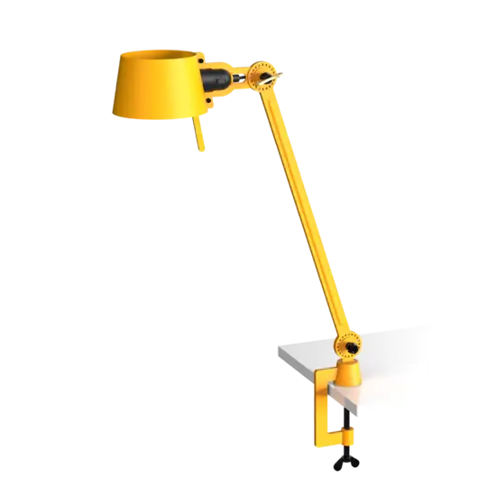 Tonone Bolt Desk 1 armklemme er et design af Anton de Groof. Den robuste industrielle lampeserie BOLT er genkendelig ved funktionalitet i form, rene linjer og vingemøtrikkens ikoniske hovedrolle. Bolt-serien fås i 29 modeller. Skrivebordslampen er kendetegnet ved en justerbar pulverlakeret stålarm og en åben skærm lavet af pulverlakeret aluminium. Den åbne skærm sikrer en flot lysfordeling. Den massive messingvingemøtrik er inkluderet til at justere hængslerne efter ønske. Udover at være et funktionelt hjælpemiddel er vingemøtrikken integreret i lampens design og er et karakteristisk visuelt element. Lampen kan drejes og har en klemme til at fastgøre lampen til et skrivebord eller bord. Skrivebordslampen fås også med fod. Tonone Bolt-serien i 11 farver: Smokey Black, Flux Green, Pure White, Ash Grey, Midnight Grey, Lightning White, Striking Orange, Thunder Blue, Daybreak Rose, Sunny Yellow og Ice Blue.
