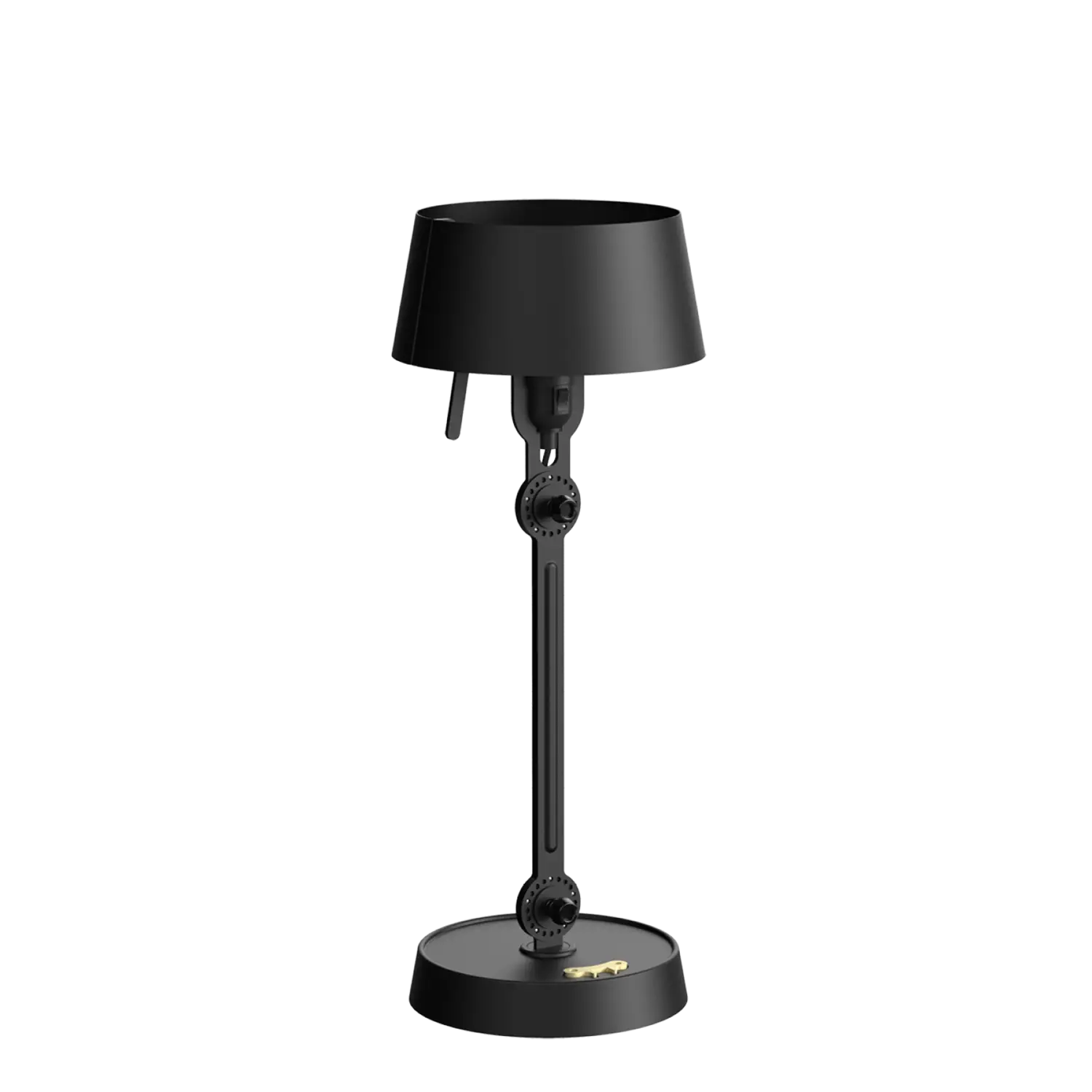 Tonone Bolt Table Small er et design af Anton de Groof. Den robuste industrielle lampeserie BOLT er genkendelig ved funktionalitet i form, rene linjer og vingemøtrikkens ikoniske hovedrolle. Bolt-serien fås i 29 modeller. De Bolt Table Small er kendetegnet ved en justerbar pulverlakeret stålarm og en åben skærm lavet af pulverlakeret aluminium. Den åbne skærm sikrer en flot lysfordeling. Bordlampen er justerbar 2 steder med vingemøtrikken. Lampen kan drejes og har en tung fod. Den massive messingvingemøtrik medfølger. Udover at være et funktionelt hjælpemiddel er vingemøtrikken integreret i lampens design og er et karakteristisk visuelt element. Tonone Bolt-serien fås i 11 farver: Smokey Black, Flux Green, Pure White, Ash Grey, Midnight Grey, Lightning White, Striking Orange, Thunder Blue, Daybreak Rose, Sunny Yellow og Ice Blue.