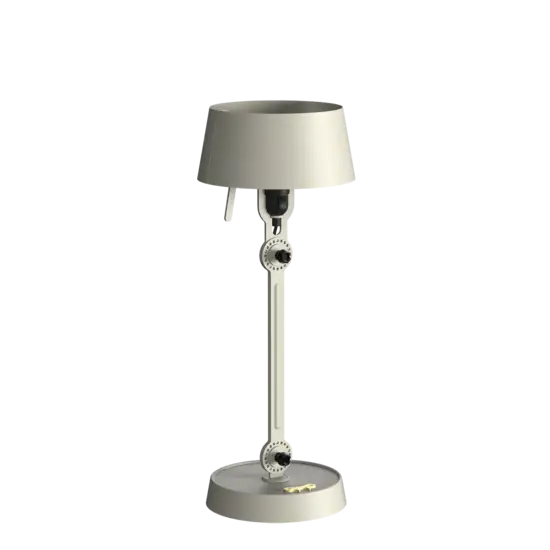 Tonone Bolt Table Small er et design af Anton de Groof. Den robuste industrielle lampeserie BOLT er genkendelig ved funktionalitet i form, rene linjer og vingemøtrikkens ikoniske hovedrolle. Bolt-serien fås i 29 modeller. De Bolt Table Small er kendetegnet ved en justerbar pulverlakeret stålarm og en åben skærm lavet af pulverlakeret aluminium. Den åbne skærm sikrer en flot lysfordeling. Bordlampen er justerbar 2 steder med vingemøtrikken. Lampen kan drejes og har en tung fod. Den massive messingvingemøtrik medfølger. Udover at være et funktionelt hjælpemiddel er vingemøtrikken integreret i lampens design og er et karakteristisk visuelt element. Tonone Bolt-serien fås i 11 farver: Smokey Black, Flux Green, Pure White, Ash Grey, Midnight Grey, Lightning White, Striking Orange, Thunder Blue, Daybreak Rose, Sunny Yellow og Ice Blue.