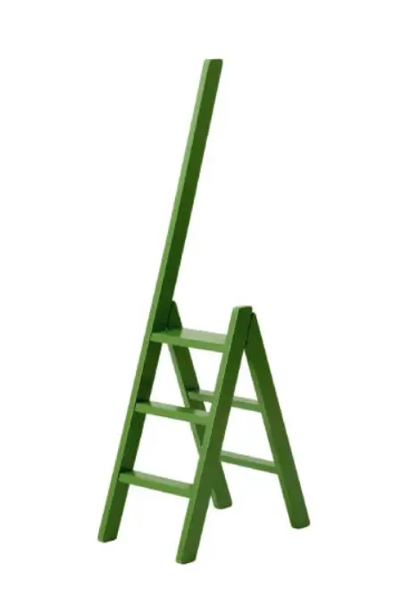 Denne trappestige kombinerer solid konstruktion med praktisk design. Den er fremstillet i massiv, lakeret birk og udstyret med specialdesignede, patenterede messinghængsler, der sikrer stabil og sikker brug i hverdagen.