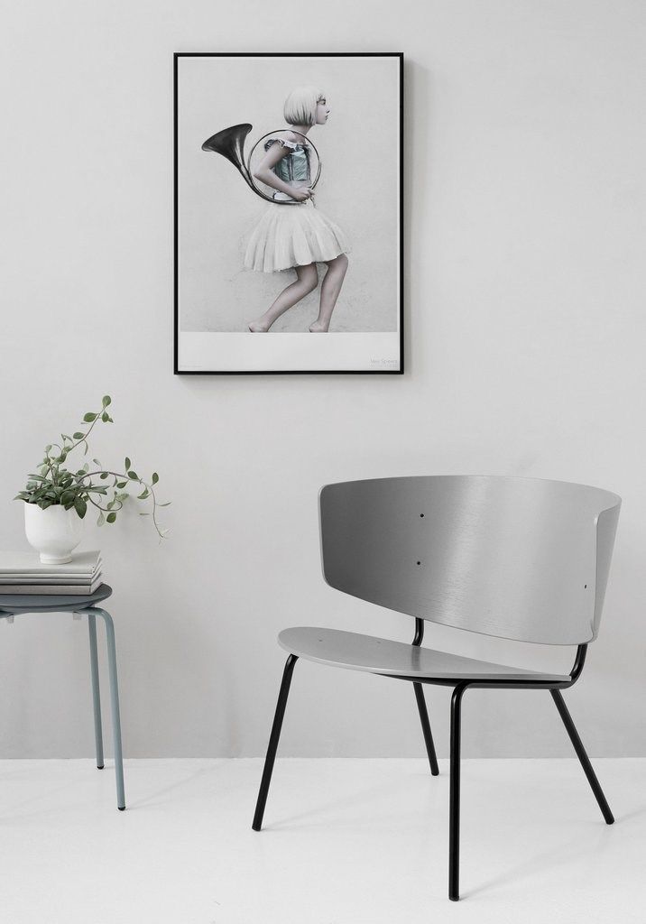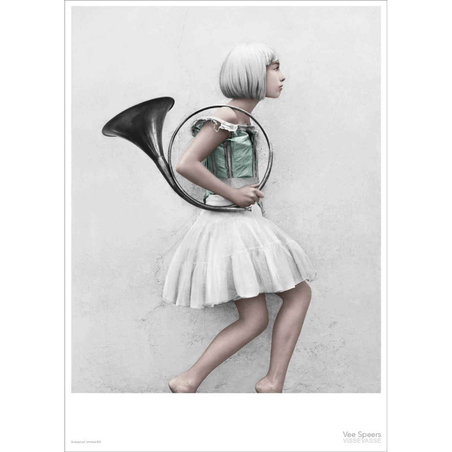 Super fin og interessant plakat "Pigen med det runde blæseinstrument om armen" er fra serien BULLETPROOF.
