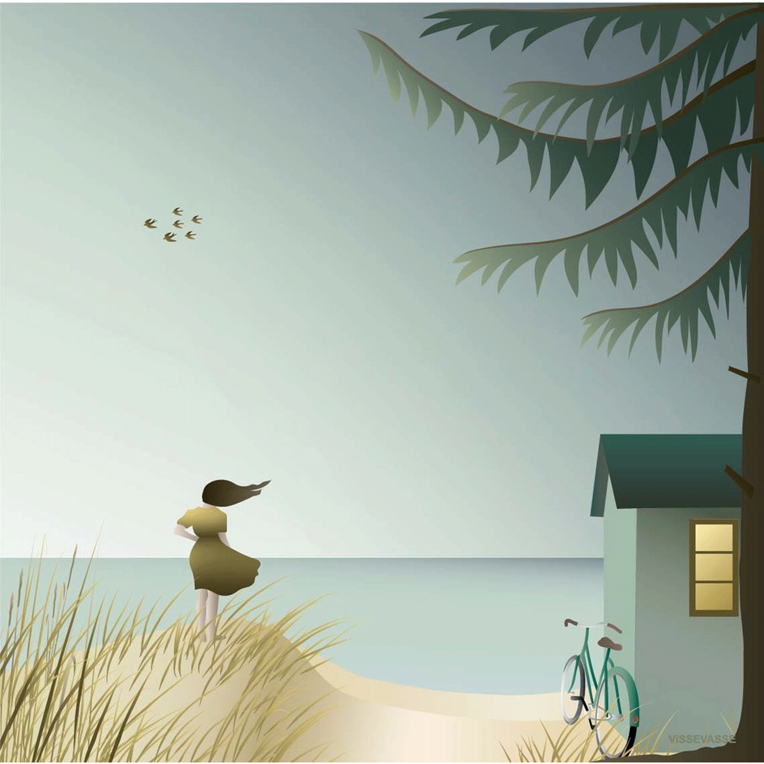 Dejlig plakat fyldt med stemning. Der opstår en helt særlig klarhed og ro i sindet, når man står og kigger ud i horisonten, hvor hav og himmel mødes. Pludselig kan man se alting klart, og alt virker muligt.